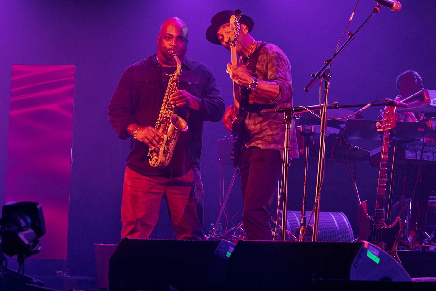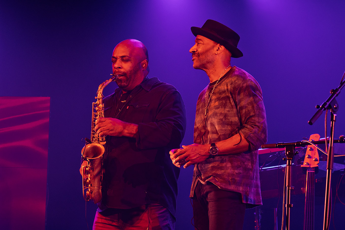 Sein Klang ist klar, körperlich, fast greifbar. Jeder Ton erzählt von Funk, Soul und Jazz – alles fließt ineinander, mühelos, selbstverständlich. Im Terrassensaal des Forums zeigt er, bereits zum 10. Mal bei den Jazztagen, was wahre Größe bedeutet: Präzision, Gefühl, Groove. Seine Band atmet mit ihm – geschmeidige Keys, Saxofon, Trompete, treibende Drums. Wenn Marcus Miller den Bass singen lässt, öffnet sich ein Raum voller Energie und Wärme.