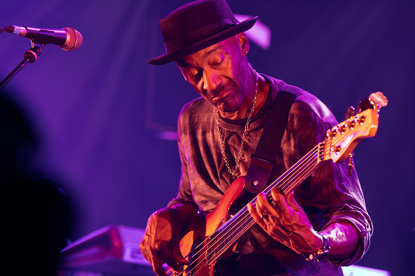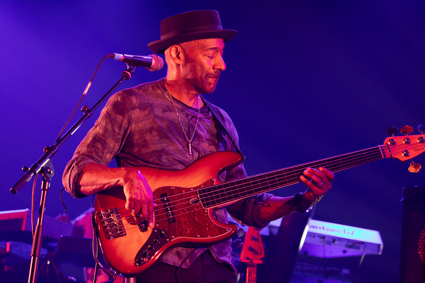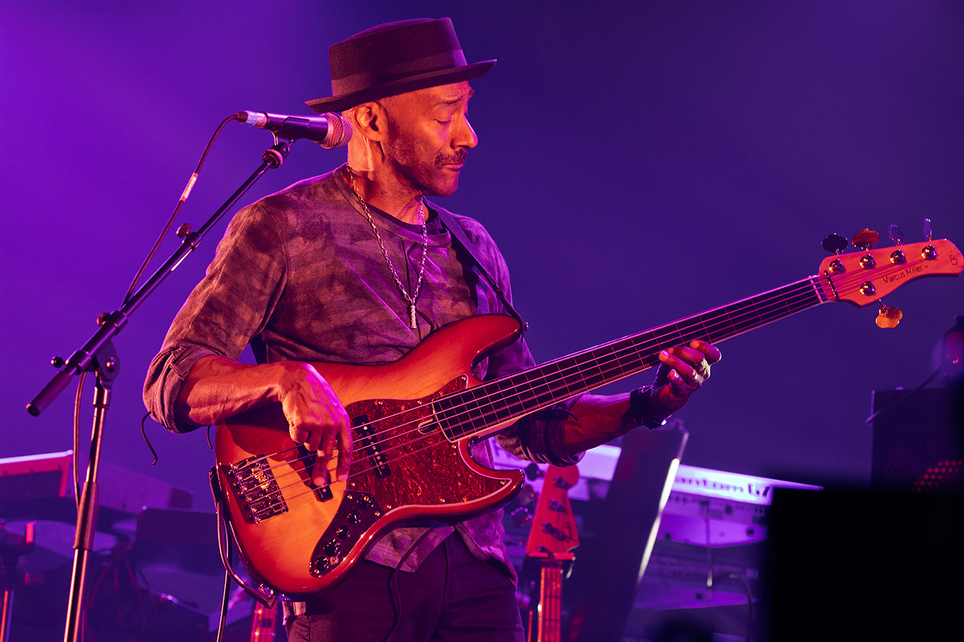 Es ist der Moment, auf den an dem Abend alle warten. Marcus Miller betritt die Bühne er spielt keinen Bass – er atmet ihn!